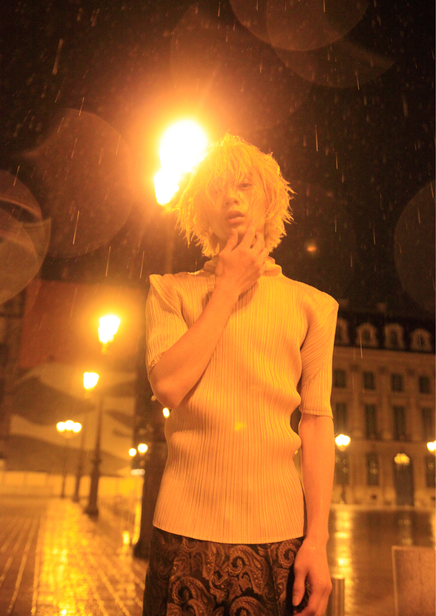 撮影日程も終盤に差し掛かった深夜3時、冷たい雨が降っている状況の中で撮影しました。